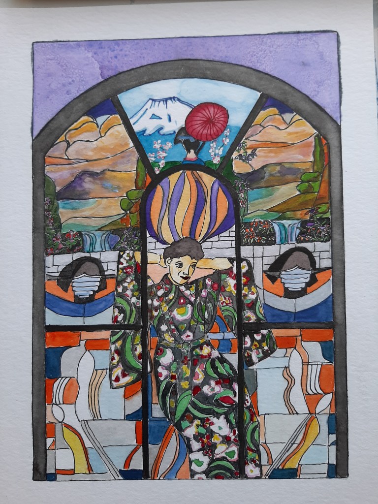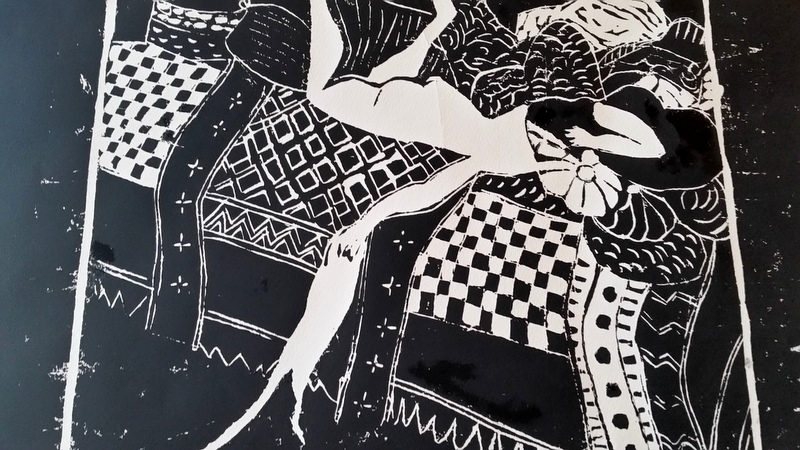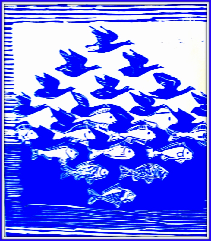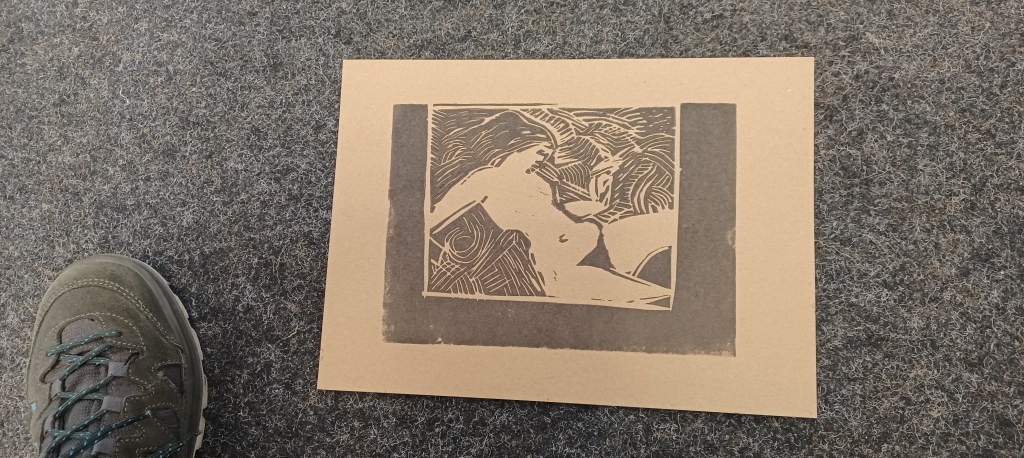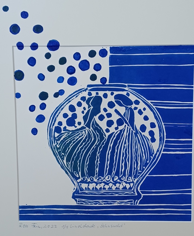 Linoldruck ” Sehnsucht” ; “Hommage an M.C. Escher”, 2022