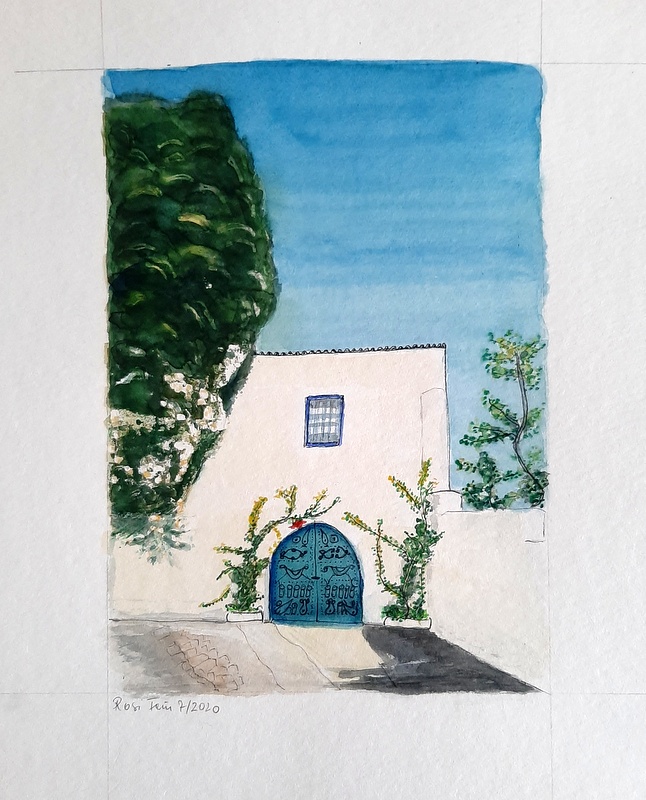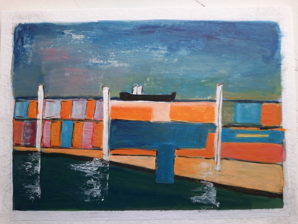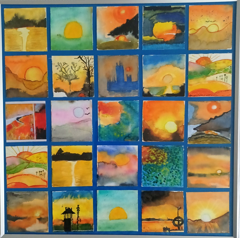 “Sunsets”, Aquarell, Papier und Pappe, 50 x 50