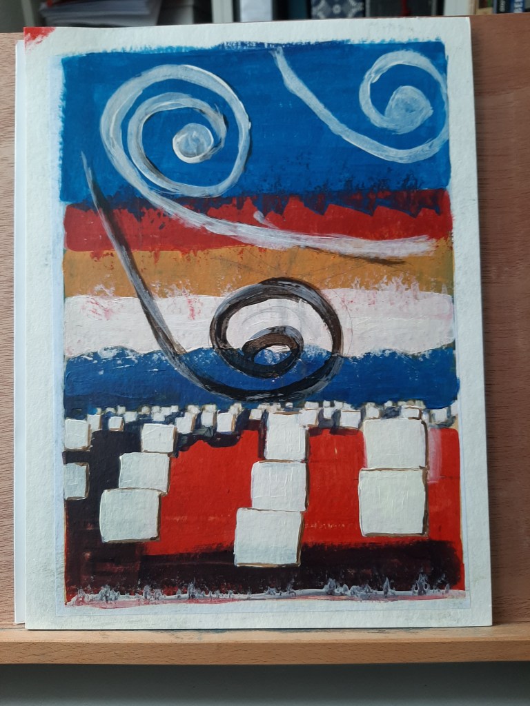 2023 : “Abendröte”, Collage Filz und Acryl, 24 x 32 cm